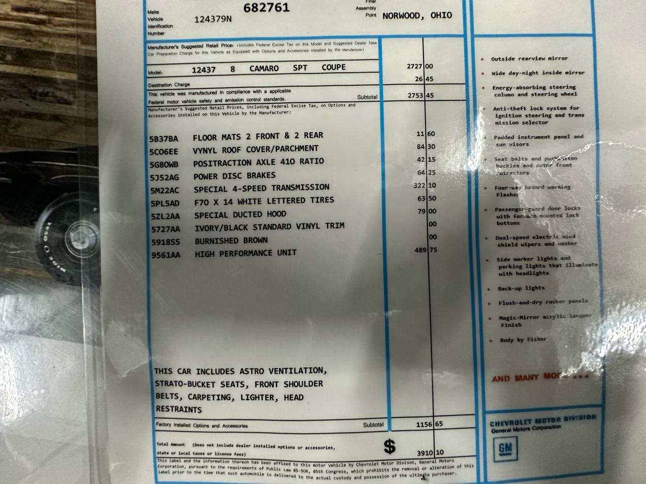 1969 Chevrolet Camaro 2dr Cpe
